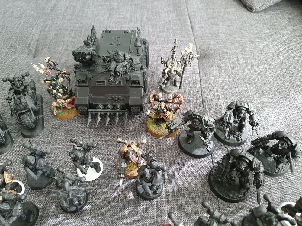 Salut à tous les fans de Warhammer 40k ! Je vends ici une armée complète de Death Guard (Garde de la Mort), la légion Chaos du dieu Nurgle. Les figurines sont déjà assemblées et peintes, donc prêtes à être utilisées sur la table de jeu. C'est de l'occasion, donc certaines pièces peuvent présenter de petites traces d'usage, mais globalement l'ensemble est en bon état. Parfait si tu veux commencer une armée Chaos sans passer des heures à monter et peindre. La boîte contient diverses unités, probablement des Space Marines, des Terminators, peut-être un char… Détails précis à voir en photos. Produit de Games Workshop, authentique. Idéal pour compléter ta collection ou pour offrir à un joueur passionné !